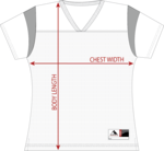 4.4 ounce 100% polyester tricot mesh * 2.2 ounce 100% polyester dazzle fabric yoke and sleeves * Junior fit * Outside locker label * V-neck collar * Side vents * Not to be worn with pads * Front and back yoke large enough for embellishment * Set-in sleeves